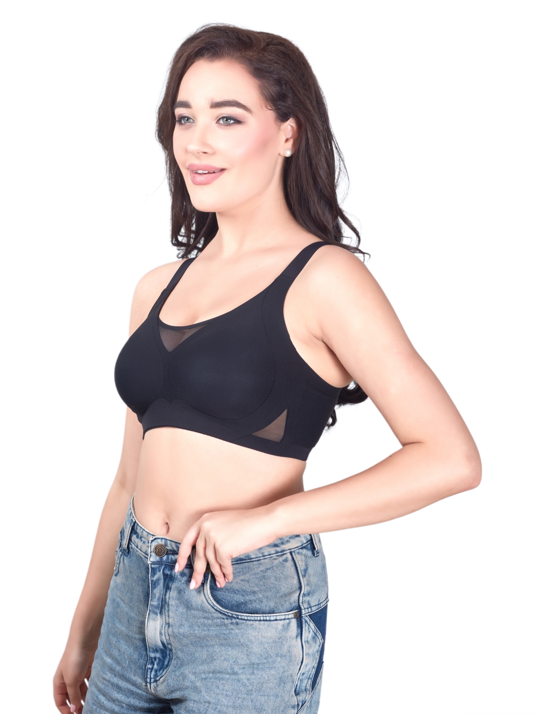Its smooth molded cups give a gentle lift, while the side mesh panels allow airflow, keeping you fresh through long hours.