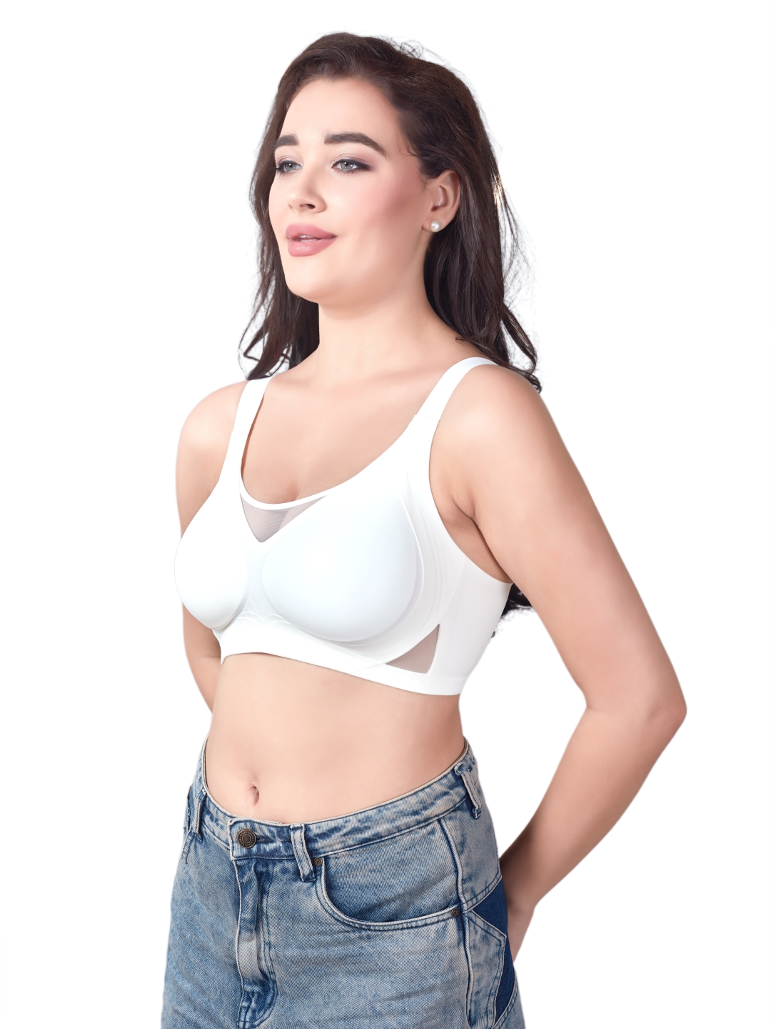 Its smooth molded cups give a gentle lift, while the side mesh panels allow airflow, keeping you fresh through long hours.