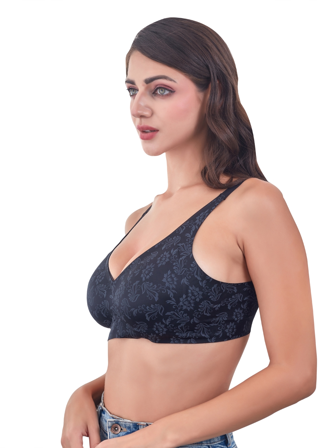 Innervibe 09 blends elegance and comfort with its beautiful floral-patterned fabric and smooth molded cups.