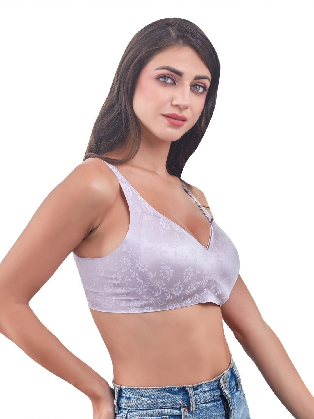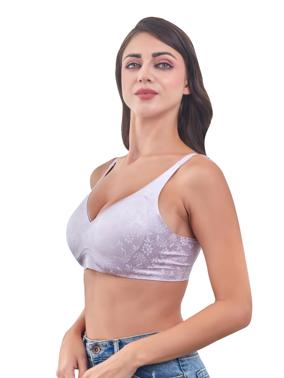 Innervibe 09 blends elegance and comfort with its beautiful floral-patterned fabric and smooth molded cups.