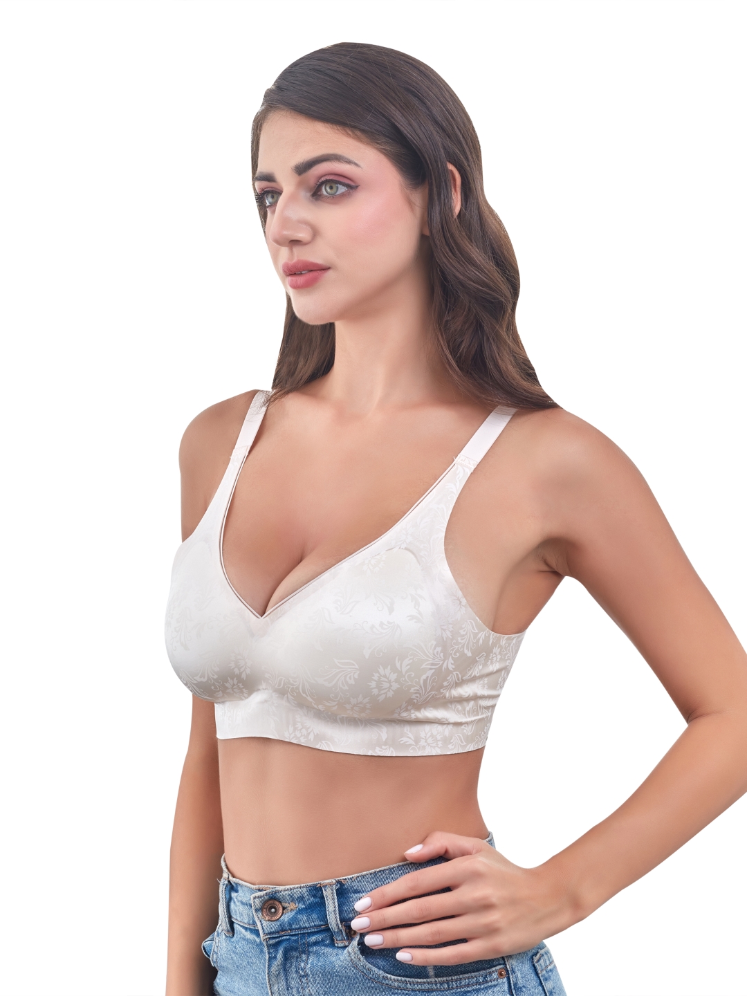 Innervibe 09 blends elegance and comfort with its beautiful floral-patterned fabric and smooth molded cups.