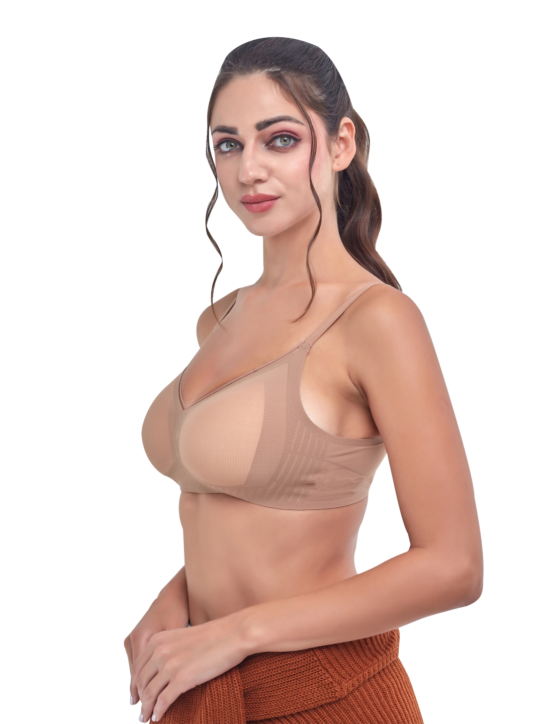 INNERVIBE 10 is crafted for women who prefer lightweight comfort with natural shaping. Made using breathable textured cups and soft stretch fabric, this bra ensures a perfect fit without irritation or pressure. Its seamless design makes it ideal under T-shirts, tops, and everyday outfits.