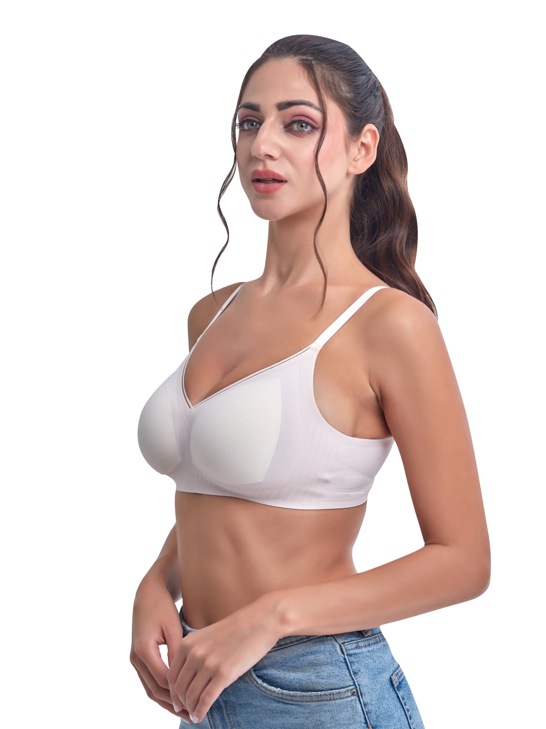 INNERVIBE 10 is crafted for women who prefer lightweight comfort with natural shaping. Made using breathable textured cups and soft stretch fabric, this bra ensures a perfect fit without irritation or pressure. Its seamless design makes it ideal under T-shirts, tops, and everyday outfits.
